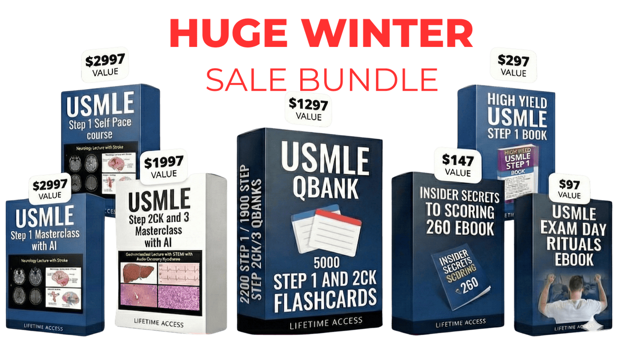 ONE TIME OFFER: ONE TIME OFFER $47 (Add on): This is MY CORE BUNDLE PACKAGE that all my students talk about. After you finish your 6-12 week crash course and before you sit for your test, there are still some important things you must know before taking the USMLE. Last week, I did this webinar on "How to Save time on the USMLE Exam Day" with all My students who took the USMLE.This webinar is tailored towards to guide you before the day of of your USMLE exam. It will give you a systematic approach of how to know when you are ready to take the USMLE . YOU GET MY WHOLE biostatistic formula hack (19.99) ... Exam Day ritual Book (29.99), Student advice Session (99.99) = That's a real world value of $149.99 USD! CLAIM IT TODAY FOR ONLY $47!